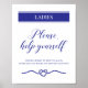 Dieses fabelhafte marineblaue Hochzeitszeichen ist eine großartige Idee, um in den Damenbädern neben dem Korb der Wesentlichen zu platzieren, die sie vielleicht brauchen. Es wird auch Ihre Gäste ermutigen, wieder auf die Tanzfläche zu kommen!