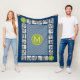 Navy Blue Lime Green Chevrons Custom Monogram Fleecedecke
