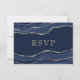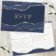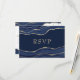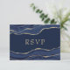 Navy Blue Marble Agate Gold Glitzer Wedding RSVP Karte