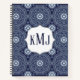 Bleibe stilvoll mit diesem modernen niedlichen Monogramm-Notizbuch, perfekt für Zuhause, Büro oder Schule! Mit seinem eleganten, zeitgenössischen Design präsentiert es ein stilvolles, einzigartiges Muster in elegantem Marineblau und Weiß mit einem klassischen Mandala-Stil. Personalisieren Sie es mit Ihren mit Monogramm Namensinitialen, betont durch fett geschriebenes Design und trendige lustige Typografie. Dieses Notizbuch verbindet Kreativität nahtlos mit Praxisnähe und macht es zu einer eleganten und vielseitigen Ergänzung Ihrer täglichen Essentials.