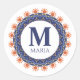 Navy Blue Monogram Name Mandala Custom Runder Aufkleber