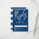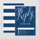 Nautische RSVP-Karte mit kalligrafischem Skript und Streifen zurück in marineblau. Das ist Teil einer Hochzeitssuite. Andere Farben und passende Artikel sind in meinem Shop erhältlich.