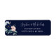 Diese stilvollen und trendigen Hochzeitsfeier-Rücksendeadressen-Aufkleber sind mit einem dunkelblauen Hintergrund, mit nautisch-farbenen Aquarellfarben-Blume und grünen Blätter ausgestattet. Ihre Namen und Rücksendeadresse erscheinen in moderner, weißer Schrift und Schrift-Typografie.