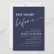 Die "Minimalistische Navy Blue The Night Before Probe Dinner Invitation" bietet eine zeitlose und raffinierte Möglichkeit für Ihre Hochzeitsfeier. Mit seiner tiefblauen Marineblau strahlt diese Einladung Eleganz und Raffinesse aus. Es basiert auf minimalistischen Designprinzipien und zeichnet sich durch klare Linien, eine dezente Typografie und einen Fokus auf wesentliche Details aus. Ideal für Paare, die eine schicke und stilvolle Einladung suchen, die den perfekten Ton für ihr Probe-Dinner Set.