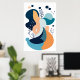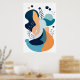 Navy Blue Orange Abstrakt Boho Illustration AI Art Poster