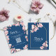 Navy Blue Pink Magnolia Floral Wedding Reply By RSVP Karte