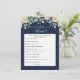 Navy Blue Floral Who Knoth the Bride Best Game - présente un script décoratif avec élégance rose pâle roses et fleurs beiges crème, feuilles verdoyants. Le revers de ce jeu de réponses est bleu marine avec des fleurs romantiques rose et beige.