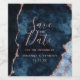 Navy Blue Rose Gold Agate Marble Save the Date Weinetikett
