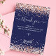 Marineblau, mit Rose goldgelben Konfetti dekoriert. Große handgeschriebene Schrift und der Text: Danke. Personalisieren Sie Ihre Dankeschön Notiz und Name hinzufügen.