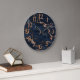 Navy Blue Rose Gold Marble Agate Große Wanduhr