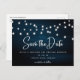 Navy Blue Rustic Holz String Leuchten Save the Dat Postkarte