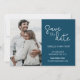 Dieses stilvolle und moderne Save the Date-Flachbild-Design lässt sich leicht mit einem Verlobung-Foto, Braut- und Bräutigam-Namen, Hochzeitstermin, Ort und Hochzeitswebsite anpassen. Personalisieren Sie diese Hochzeit Speichern Sie die Datums-Magnetkarte und teilen Sie Ihre spannenden Neuigkeiten. Blaues Motiv.