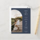 Navy Blue Script Arch Foto QR Code Save the Date Postkarte