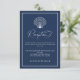 Diese marineblaue, tropische Hochzeitskarte für Empfänge bietet eine Jakobsmuschel-Muschel an der Spitze, ein elegantes Drehbuch und einen Rahmen rund um den Rand. Bitte lesen Sie die Kollektion für die Erholung der passenden Hochzeitssuite und weiterer passender Produkte.