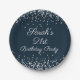 Navy Blue Silver Glitzer 21. Geburtstag Party Pappteller