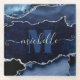 Navy Blue & Silver Glitzer Marbour Agate Monogram Glasuntersetzer