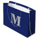 Navy Blue & Silver Modern Letter Monogram Große Geschenktüte
