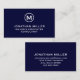 Navy Blue Simple Monogram Visitenkarte