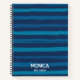 Navy blue stripes personalized names notebook ,elegant blue stripes personalized name notebook.