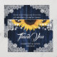Thank your guest for sharing in your special day with these elegant navy blue and sunflower wedding thank you cards featuring sunflowers, string lights and delicate floral lace against a rustic wood background. Matching items available.