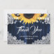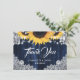 Navy Blue Sunflower Wood Elegant Script Wedding Dankeskarte
