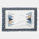 Weihnachtsküche Handtuch mit modernen, einfachen, blauen Weihnachtsbäumen und Kanten mit gepunkteten Mustern in den gleichen Farben. Kate Eden Art