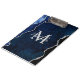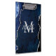 Diese Zwischenablage mit elegantem und glamourösem Marmorhintergrund mit geode gemstone Details und Imitaten silbernen Glitzer Akzenten. Das Monogramm kombiniert handgeschriebene Skripte mit modernen serifenlosen Schriftart für ein elegantes und raffiniertes Aussehen. Dies wird das ideale Geschenk, da es mit einem Namen und Initial angepasst werden kann. Die tiefen blauen Farbtöne machen es perfekt für Herbst und Winter.