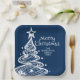 Navy Blue White Christmas Tree Party Pappteller