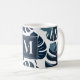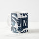 Navy Blue & White Monstera Leaf Monogram Kaffeetasse