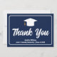 Navy Blue White Typografy Custom Graduate Dankeskarte