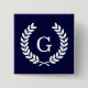 Navy Blue Wht Wheat Laurel Wreath Initial Monogram Button
