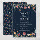 Navy Blue Wildblumen speichern die Datumskarten. Dieses stilvolle und elegante Speichern der Dattelkarten verfügt über wunderschöne handbemalte Aquarellfarben-Wildblumen. Finden Sie passende Artikel in der Navy Blue Wildblumen Dreams Collection.