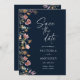 Navy Blue Wildblumen speichern die Datumskarten. Dieses stilvolle und elegante Speichern der Dattelkarten verfügt über wunderschöne handbemalte Aquarellfarben-Wildblumen. Finden Sie passende Artikel in der Navy Blue Wildblumen Dreams Collection.