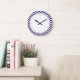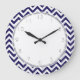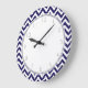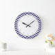 Navy Blue Zigzag Stripes Pattern Große Wanduhr