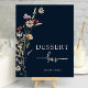 Navy Blauer Boho Blütendessert Poster. Dieses stilvolle und elegante Babyduschzeichen "Dessert Bar" | Das Poster bietet wunderschöne handbemalte Aquarellfarben-Wildblumen, die als hübsches Bouquet und elegantes Kalligrafieschrift angeordnet sind. Finden Sie passende Artikel in der Navy Blue Boho Wildblume Baby Shower Collection.