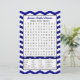 Hat dein Brautparty Marineblau als Themenfarbe? Dieses Spiel wäre dann perfekt für Sie. Dieses Brautparty-Duschwort-Suchspiel bietet einen Zickzack Zickzack in Blau und Weiß als Hintergrund für eine lustige Wortsuche mit Hochzeitswörtern. Auf der Rückseite des Spiels befindet sich auch das Zickzack-Design von Marine und Weiß. Sie können das Spiel sogar mit dem Namen Ihrer Braut anpassen. Copyright henishouseuse paper