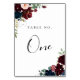 Modernes und elegantes Typografie-Design, Tischnummer-Karte. Die Karte zeichnet sich durch elegante Aquarellfarben in Rosa-, Blau- und Bordeaux-Farbtönen aus. Bei der Bestellung von Tischnummern muss jede Karte nummeriert und einzeln bestellt werden. Entworfen, um unsere Navy Burgundy Blush Floral Collection.