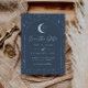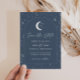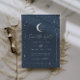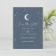 Eine himmlische Moon- und Stern-Save the Date-Karte mit grauem Hintergrund und weißem Text mit Elementen. Passen Sie die Farbe des Sternmusters, des Hintergrunds, des Bogenfüllens und des Mondelements an!