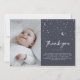 Ein Foto Dankeschön-Karte mit einem marinen Hintergrund und einem Mond und Sternen Muster. Ideal, um Ihren Gästen zu danken, dass sie zu Ihrer Geburtstagsparty gekommen sind! Sie können diesem Design Ihr eigenes Foto hinzufügen.
