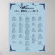 Finding your seat never looked this good. A soft dusty blue backdrop sets the stage, while navy design elements and graceful script calligraphy add depth and sophistication. Clean names stand out in bold fonts, and the alphabetical layout with editable table numbers keeps the flow stress‑free. Perfect for coastal summer weddings, chic autumn evenings, or elegant winter ballrooms, this seating poster doubles as décor and direction—proof that organization can be just as stylish as the celebration itself.