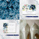 Elemente: Aquarellfarbene Blume und Grünpflanzen mit einer Mischung aus Serifen und serifenlosen Schriftart. Farben: mariniert, staubblau, Stahlblau, weiß, rot, grün. Themen: rustikal, Garten, Böhmen, Land, Hochzeit im Freien, modern, Vintag, Französisch. Sammlung: Navy & Dusty Blue Elegant Floral Watercolor Wedding Collection. Art des Produkts: Programm