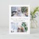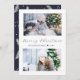 Schick Weihnachtsgrüße mit Stil. Diese elegante und moderne Urlaubskarte bietet zwei Fotos mit weißem und marinebauendem Design, in eleganter, trendiger handgeschriebener Schriftzeichen-Typografie, Familienname und Jahr in klassischem Serif-Schriftart. Die Rückseite der Karte ist eine Marine mit einem Weihnachtsbaumzweig-Muster.