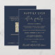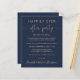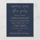 Günstige marineblaue Hochzeitsempfehlung. Die Vorderseite zeigt "Happily Ever After Party" in einer Mischung aus einfacher Goldtypografie und einem eleganten Goldskript mit Swashes und Ihren Namen in einem signaturähnlichen Skript. Auf der anderen Seite, fügen Sie Ihre Hochzeitwebsite-Adresse, um einen QR-Code für Gäste zu scannen, um mit Ihren Hochzeit-Fotos, alle Einzelheiten und UAWG online behalten, und fügen Sie Ihre Vornamen und Hochzeit und Empfang Daten.