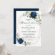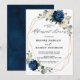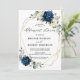 Dunkelblau blühende Probe-Dinner Einladung mit elegantem Bouquet von marineblau, königsblau , weiß , gold, Champagnerelfenbein, blütenfarbene Rose, Hydrangea, Ranunculus, Peony, Blume Knospen und Salbei grünen Eukalyptus-Blätter und elegante Wasserfarbe mit kreisförmigen Glitzer geometrischen neutralen Rahmen. Bitte kontaktieren Sie mich für Hilfe bei der Anpassung oder wenn Sie ein anderes Produkt mit diesem Design benötigen.