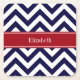 Navy Lg Zickzack Cranberry Quatrefolienname Monogr Rechteckiger Pappuntersetzer