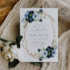Navy & light blue floral geometric wedding einladung