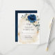 Carte de réponse de mariage à fleurs bleu marine foncé avec un bouquet élégant de roses bleu marine, bleu roi, blanc, or, ivoire champagne, couleur rose blush, bourgeons de fleurs de renoncule et feuilles d'eucalyptus vert sauge et aquarelle élégante avec un cadre géométrique à paillettes rondes. N'hésitez pas à me contacter pour toute aide de personnalisation ou si vous avez besoin d'un autre produit avec ce design.