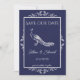 Personalisieren Sie eine einzigartige Hochzeitsankündigung mit einem Navy Peacock Blühte Save the Date. Das Ankündigungsdesign besticht durch einen eleganten Pfau mit Schnörkeln. Zusätzliche Ankündigung Datum freihalten für dieses Design in verschiedenen Farben verfügbar.