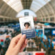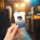 Sleek Navy Blue Personalized Employee Company ID Badges. It contains a customizable name and title, company address and additional information. A custom employee photo, image, picture, or photograph.
