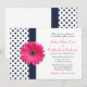 Navy Polka Dot Pink Daisy Wedding Einladung